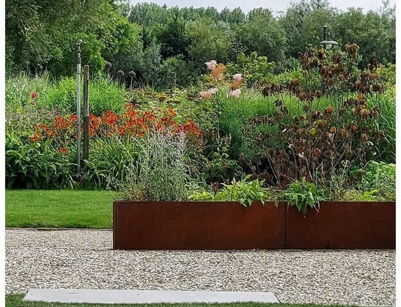 Het Grönfeld bouwsysteem bestaat uit losse metalen panelen. De metalen panelen zijn uit één stuk en dubbel gezet, en zijn daardoor extra stevig en ontstaat er een mooie rand aan de bovenkant, dus je hebt in je handen een super degelijk Deens product. De panelen zijn verkrijgbaar in diverse standaard hoogtes en lengtes. Het modulaire systeem is zo ontworpen dat je eenvoudig en snel hoge, vierkante, rechthoekige en langwerpige plantenborders en plantenbakken kunt realiseren, doordat je de panelen in de hoogte kunt stapelen en in de lengte en breedte aan elkaar kunt koppelen.